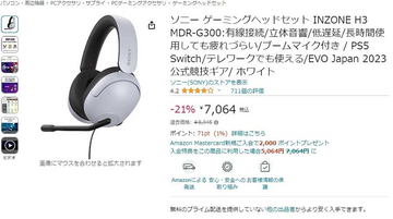 ソニー有線ゲーミングヘッドセット「INZONE H3」が21% OFF