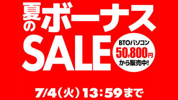 パソコン工房Webサイトで「夏のボーナスセール BTO第1弾」スタート