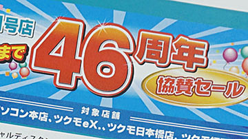 ツクモ名古屋1号店46周年協賛セール、エレコムの無線LAN中継器が2,200円、旧製品処分セール、BEEPでユキヲ氏のイラスト入り紙袋プレゼント ほか