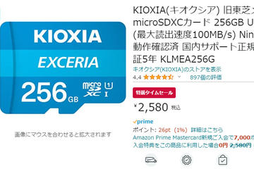 AmazonでKIOXIAのSDカード、SSDセール。256GB microSDが2,580円