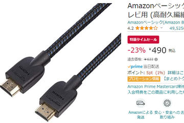 AmazonベーシックのHDMIケーブル490円。AVケーブルやスピーカーセール