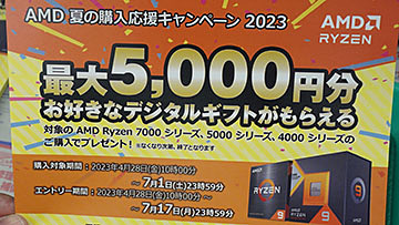 Ryzenシリーズの購入で最大5,000円分のデジタルギフトがもらえるキャンペーン