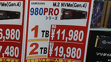 急落したSamsung製SSDがさらに値下がり、人気の980 PRO 2TBは19,980円に