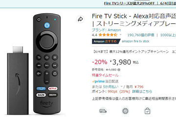 「Fire TV Stick」が最大29%オフ【Amazonタイムセール祭り】