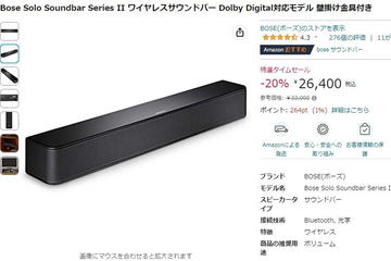 Amazonでボーズのサウンドバーが20% OFF。特選タイムセール