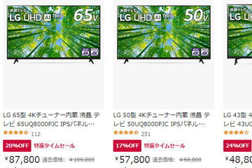 Amazon GWセール。LGやハイセンスのテレビが低価格、65型で87,800円