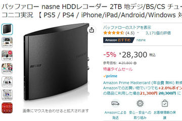 Amazon GWセール、「nasne」やゲーミングモニタが低価格に