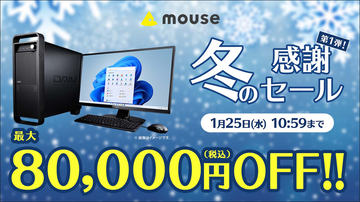 ゲーミングPCなどが最大80,000円引き、マウスコンピューターの「冬の感謝セール 第1弾」