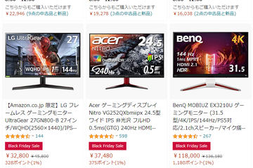 144Hz対応ゲーミングモニターが1万7,800円。Amazonブラックフライデー