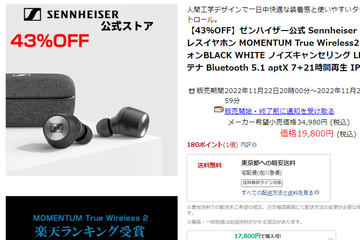 ゼンハイザー「MOMENTUM True Wireless 2」43%オフ。楽天ブラックフライデー