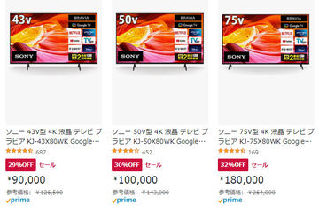 Amazonで、ソニー 4K液晶ブラビア「X80WK」最大33% OFF。12月7日まで