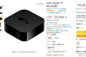 AmazonでApple TV 4Kの旧モデルが最大41% OFF