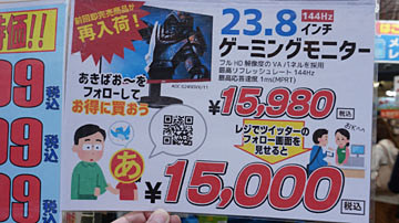 144Hz駆動の23.8型ゲーミングモニターが15,000円!早い者勝ちの数量限定セール