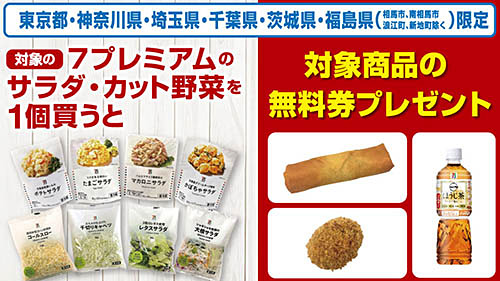 セブン‐イレブンがサラダ・カット野菜を買うと、揚げ物orドリンクプレゼントを地区限定で開催!