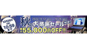 ゲーミングPCなどが最大55,000円引き、マウスコンピューターの「秋の大感謝セール 第2弾」