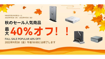 MINISFORUM、最大40%オフの「秋セール」。30日まで