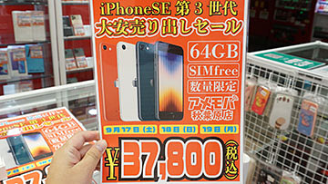 第3世代iPhone SEが最安更新で37,800円!秋葉原で週末限定セール