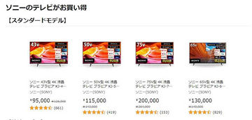 Amazonでソニー4Kブラビアのセール。最大64,000円引き