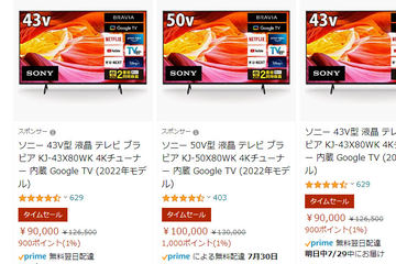 Amazon、ソニー4K液晶ブラビア「X80WK」セール。43型で9万円