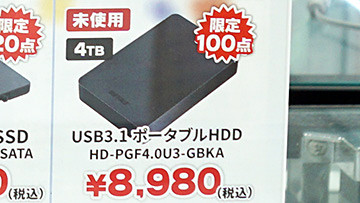 ポータブルHDD 4TBが8,980円!未使用品で限定100個