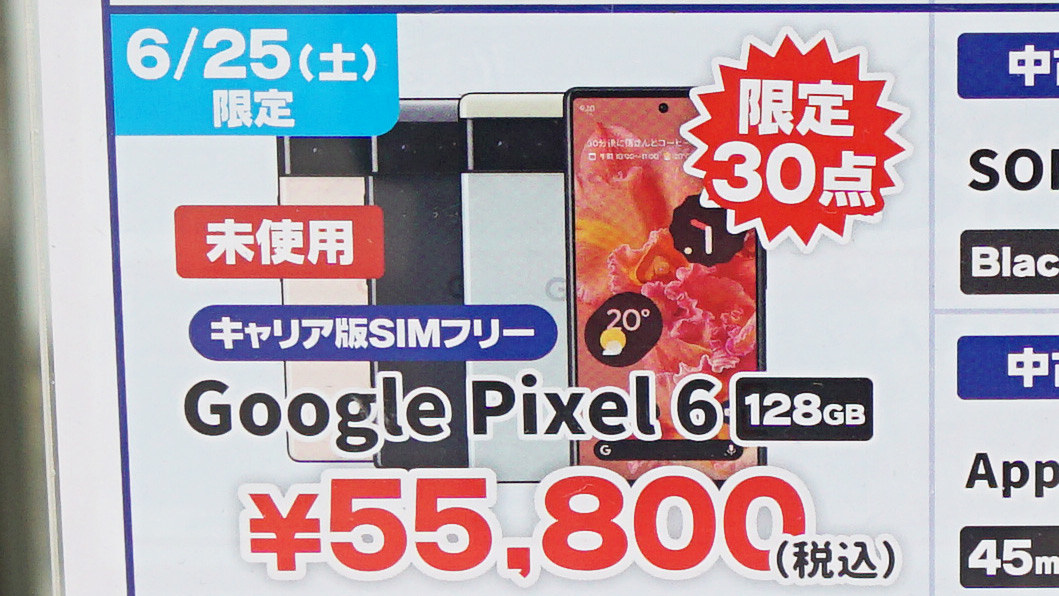 「Pixel 6」の未使用品が55,800円など!じゃんぱら25日限定のセール品