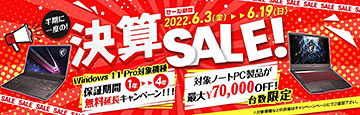 「MSIストア 決算SALE!」がスタート、ゲーミングノートが最大7万円引き!