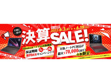 MSI、決算セール開催中。対象ゲーミングノートが最大7万円引きや無料の保証延長など
