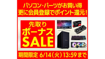 パソコン工房、BTO PCや各種パーツが対象の「先取りボーナスセール」
