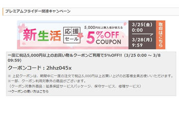 プリンストン、直販5,000円以上購入で5%オフになるクーポンを配布