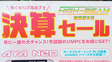 UMPC専門店「ハイビーム秋葉原本店」で決算セール。対象商品はAYA NEO 2021など