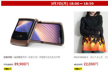 楽天スーパーSALE。7日は折り畳みスマホ、ビデオカメラが半額