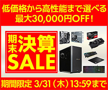 パソコン工房通販サイトで「期末決算セール」がスタート、ゲーミングPCなどが最大3万円引き