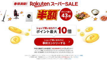楽天スーパーセール本日20時~、22時までの限定セールも実施