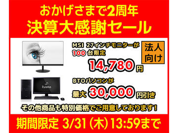 ユニットコム、BTO PCが最大3万円引きなどの法人向け決算セール