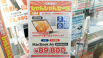 M1搭載のMacBook Airが89,800円、じゃんぱらで中古品セール