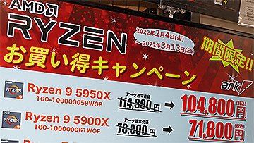Ryzen 5000シリーズが複数ショップで大きく値下がり、最大1万円引きのモデルもあり