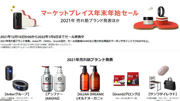 Amazon「マーケットプレイス年末年始セール」。Anker、ファンケルなど10万点以上がお得