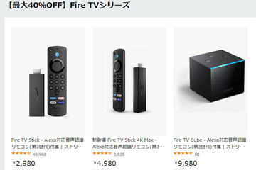 Amazon、Fire TVシリーズを最大40% OFFに。12月25日まで