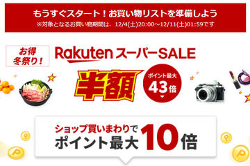 楽天スーパーSALE、12月4日20時から。BDレコーダーなどが半額