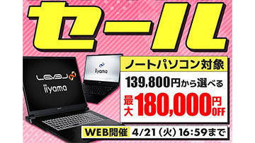 パソコン工房通販、ノートPCが対象の「スプリングセール」を開催中