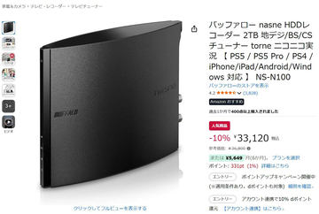 「nasne」がAmazonで10% OFF。バッファロー製HDDも低価格に