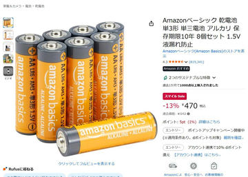 Amazonベーシックの乾電池やエネループなど低価格。スマイルSALE