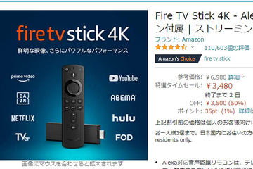 Amazon「タイムセール祭り」開始。Fire TV Stick 4Kが3,480円