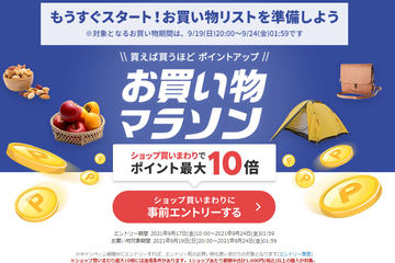 楽天「お買い物マラソン」19日20時開幕。50% OFFクーポンも