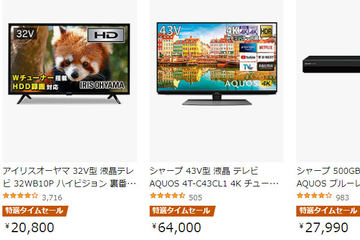 Amazonタイムセール祭り。50型の4Kレグザが69,800円