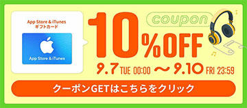 5,000円以上のiTunesカード購入で10%オフ、楽天スーパーセールでお得