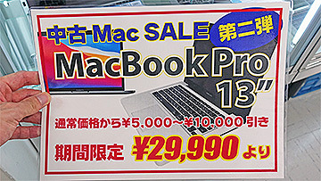 MacBook Pro 13インチが29,990円など、秋葉館で中古品Macセール