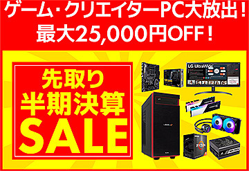 パソコン工房の通販サイトで「先取り半期決算セール」が開始、ゲーミングPCやPCパーツがお得