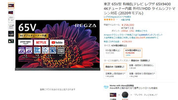 Amazon「タイムセール祭り」で65型4K有機ELレグザが25.8万円