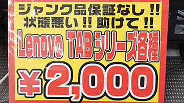 初心者お断りのLenovo TABが2,000円!イオシスで梅雨明けジャンクセール